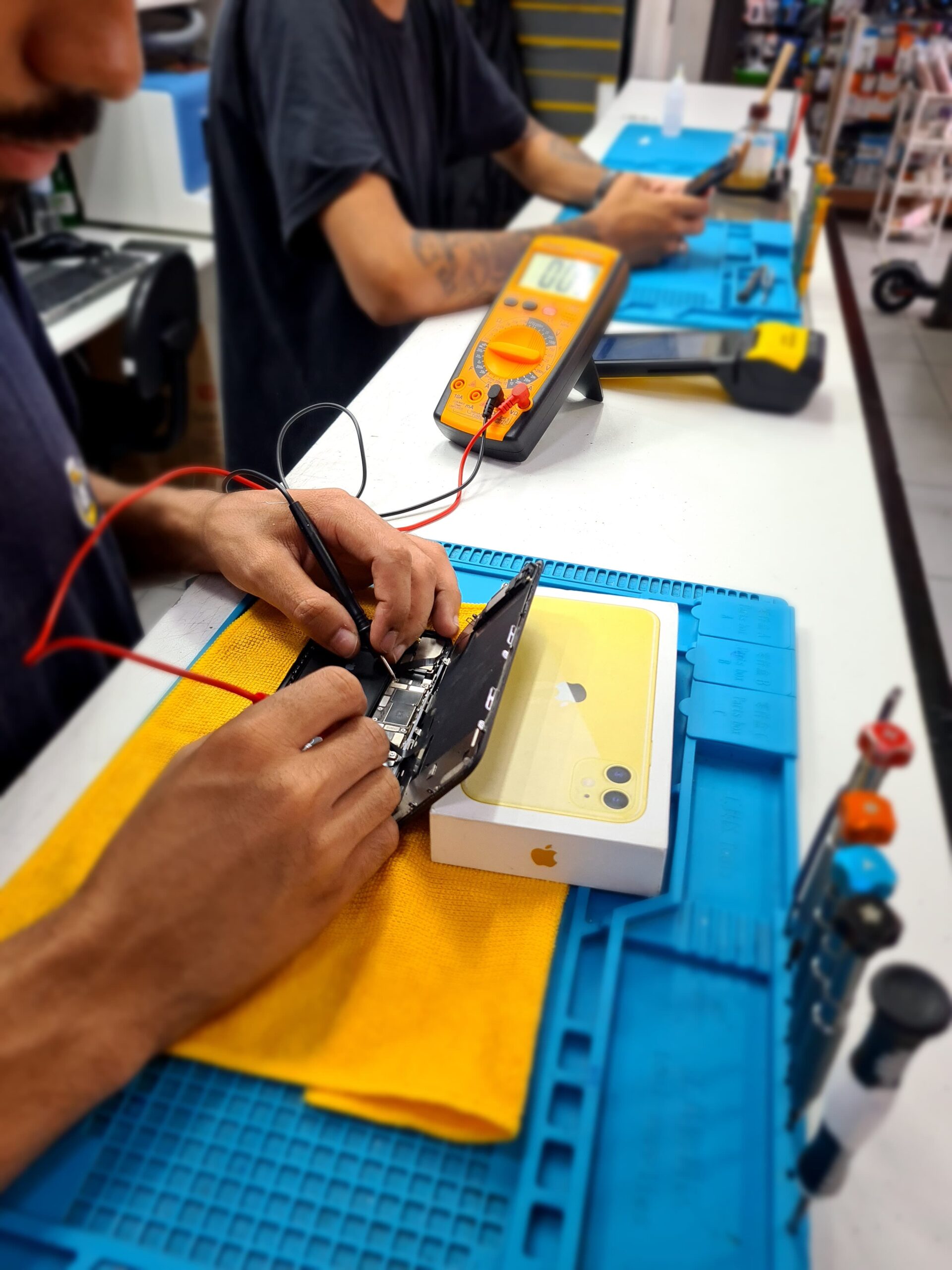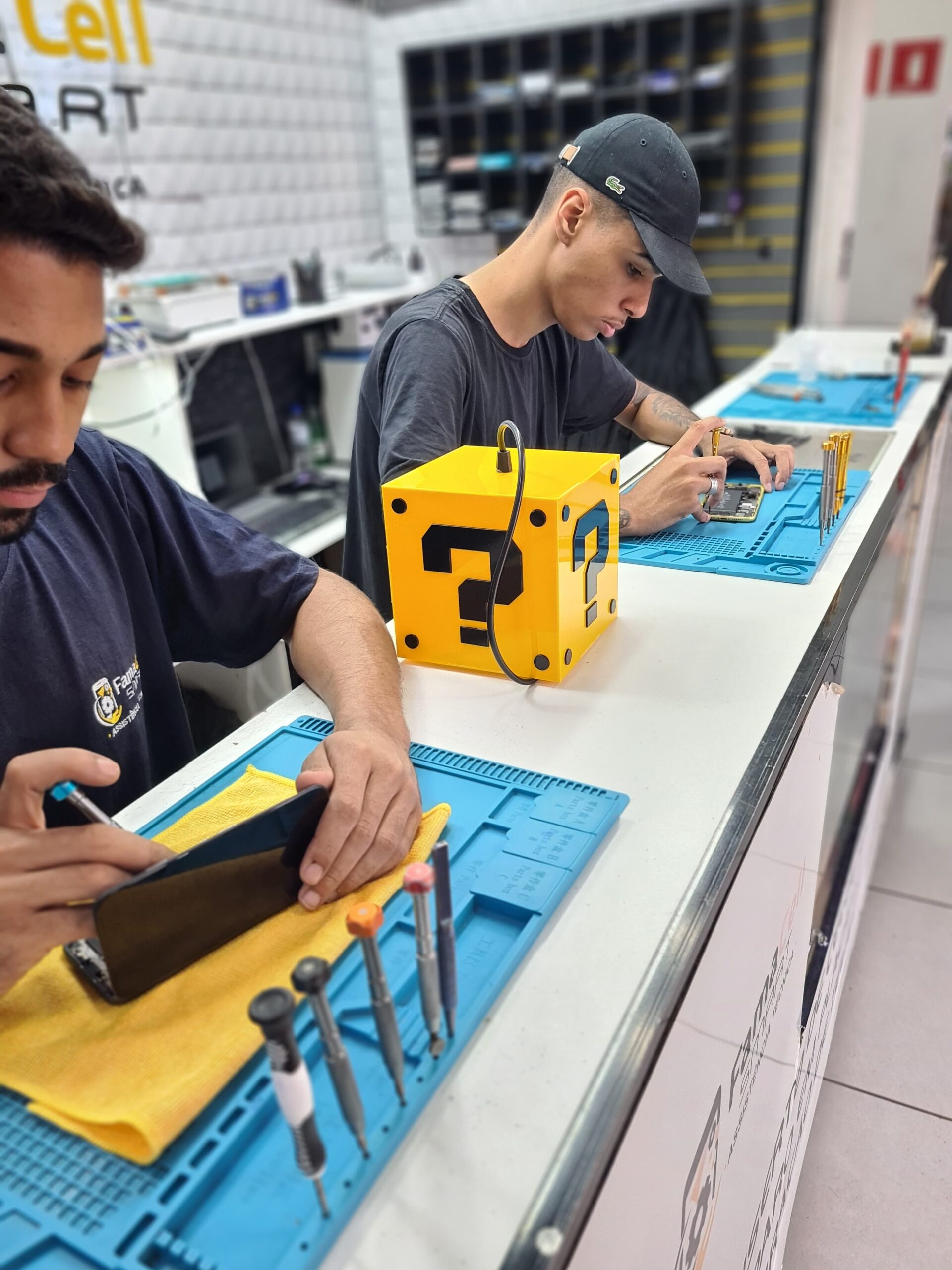 Serviços: troca de tela, restauração de tela (troca do vidro) de smartphones, reparo em placa, software, troca de bateria, reparo em conector, alto-falante, microfone, câmera, botões entre outros.